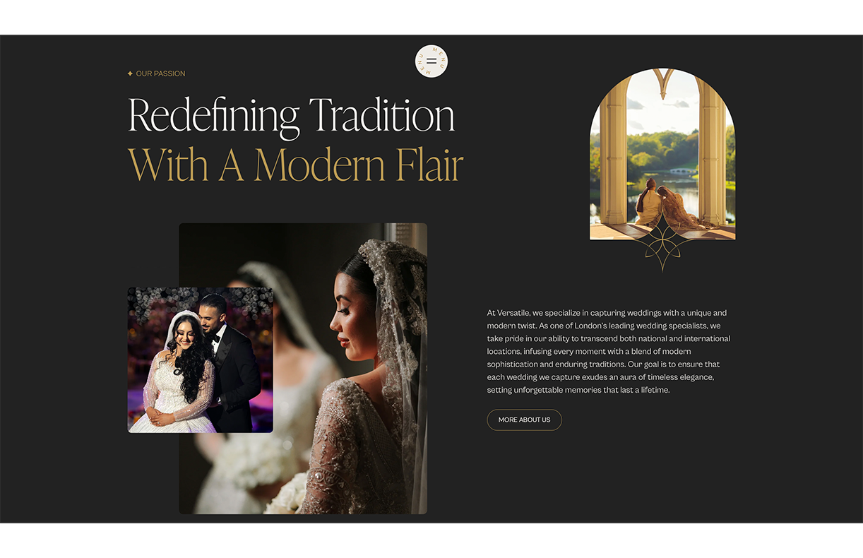 Versatile, specialists in luxury wedding cinematography and photography, approached us with a clear vision: to establish an online platform that mirrored the exceptional quality and artistry inherent in their work. They sought a website that would serve as a true reflection of their brand’s sophistication and professionalism.